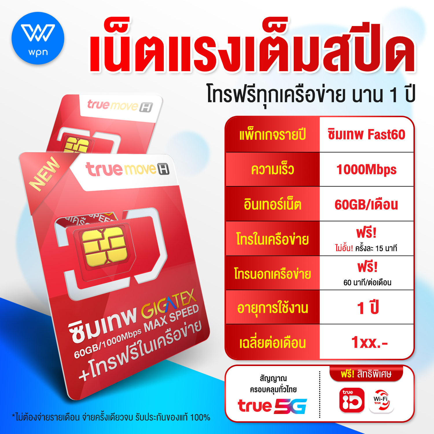 ซิมFast60GB เน็ตแรง 5G แรงสูงสุด 1000Mbps รับเน็ต 60GB/เดือน
