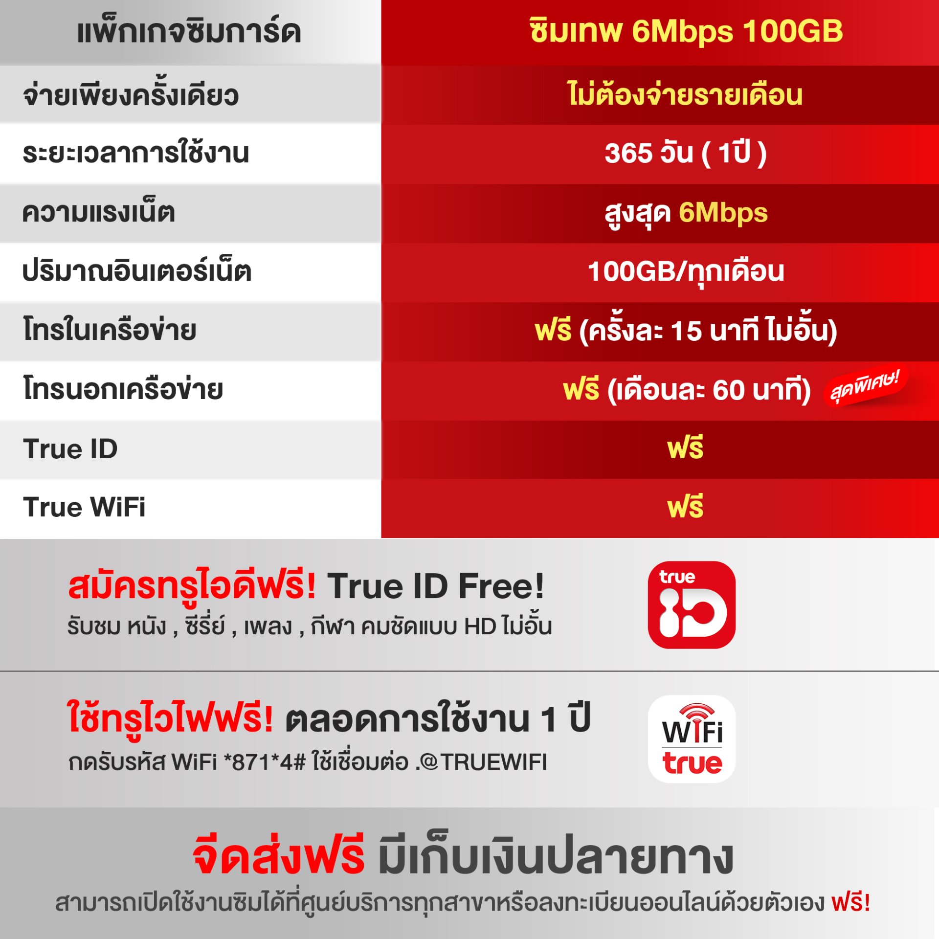 • ซิมเทพ 6Mbps 100GB ไม่ต้องเสียรายเดือน