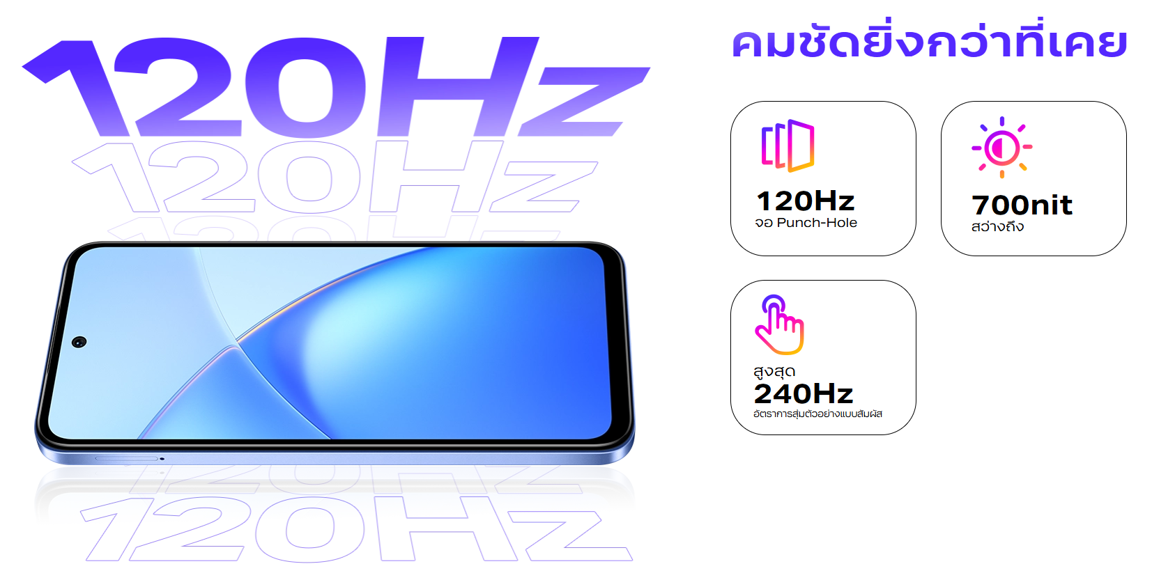 - อัตราการสัมผัสหน้าจอ 120 เฮิรตซ์ (Refresh Rate 120Hz)