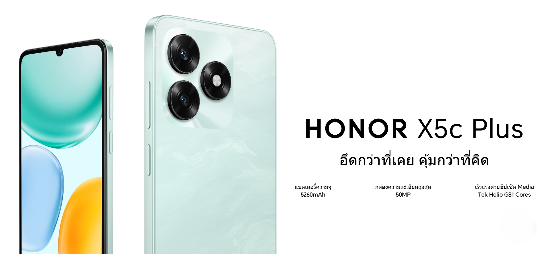 จอ 6.74 นิ้ว หน้าจอใหญ่ สว่าง และลื่นไหล 90Hz อึดกว่าที่เคย คุ้มกว่าที่คิด แบตเตอรี่ความจุ 5260mAh กล้องความละเอียดสูงสุด 50MP เร็วแรงด้วยชิปเซ็ต Media Tek Helio G81 Cores Magic Capsule มองโลกในมุมกว้างพร้อมการโต้ตอบที่เต็มไปด้วยชีวิตชีวา